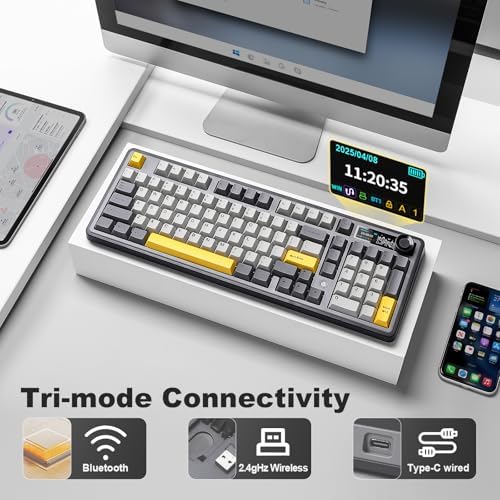Tri-Mode & Multi-Device:This gaming keyboard features three connection modes, BT5.0/2.4G wireless/USB-C ,easy to connect to computers, tablets,smartphones and other devices, no need to repeat the plug and play, so you seamlessly connect between different devices, efficient and convenient