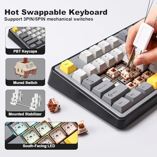 Hot-swappable Switches: no need for complex welding, supports 3/5-pin hot-swappable, equipped with an axis puller, according to preference, the use of scenarios at any time to replace the combination of different axes at will, so that the creative collocation of zero threshold, to create a dream keyboard feel that belongs uniquely to you