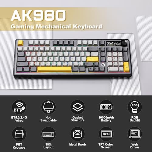 TFT Smart Display & Knob Design: TFT display shows date, time, battery level, customized gif image, WIN/MAC layout, connection mode, at a glance.The knob adjusts the volume, the light, no need for complex settings, fingertip flick, precise control, innovative design, empowering for games and creative work, opening up a convenient control