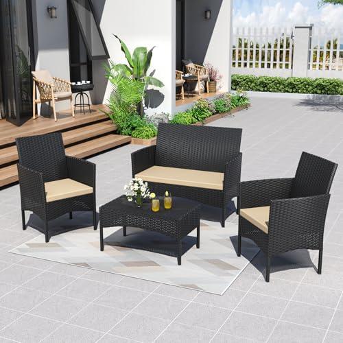 High Quality Materials: Made of high quality metal frame and tough PE rattan to ensure durability and weather resistance. ALAULM 4-piece patio furniture set is designed for outdoor use with weather and UV protection