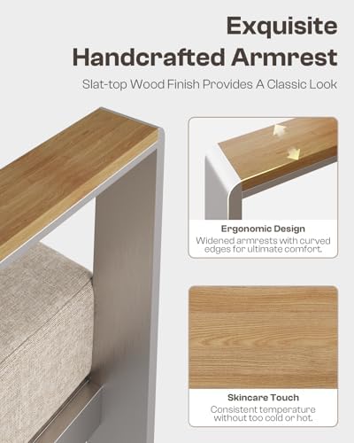 【Premium Materials】 The patio furniture set features a superior aluminum frame with a anodized finish for enhanced durability and stability, and water-resistant olefin cushions for easy maintenance and long-lasting outdoor use.
