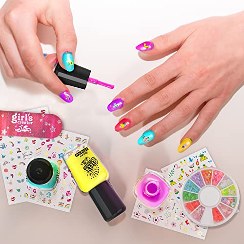 ❀Surprise Gift for Girls Ages 6 7 8 9 10 11 12 Years Old: Like mom to make up, children will have a fun. This glamour DIY nail studio kit is the fantastic present for birthdays, sleepovers party, girls spa day, holidays, Christmas, Children’s Day Easter, New Year, and other special events. From now kids can start painting their colorful mood on nail!