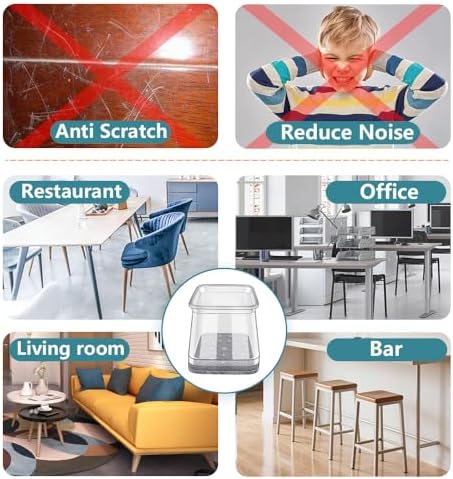 【Noise Reduction on Smooth Hard Floors】 Depending on what type of flooring you have, your chair scrapping against its surface can sound worse than nails on a chalkboard. These chair leg protectors help reduce noise by allowing your chairs to glide more quietly over hard floors.