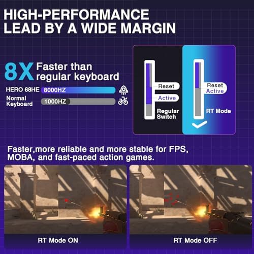 Hall Effect Magnetic Switch & Ultra-fast Response: Equipped with hall effect magnetic switches, the AULA HERO 68HE gaming keyboard has an ultra-fast 8K polling rate and ultra-low latency of 0.125ms to keep you ahead of the competition. Featuring premium construction and advanced magnetic switch technology, this hall effect keyboard ensures flexibility and superb response, perfect for FPS and other rhythm games