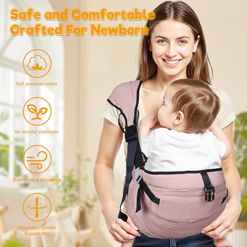 【Long-lasting & Comfortable Breathable】The baby carrier is made of safe and high-quality material, which not only provides a comfortable touch and breathability, but also has good wear resistance. The breathable fabric ensures that baby and mom will not feel stuffy during use. Suitable for use in all seasons, it will keep you comfortable even on hot summer days.