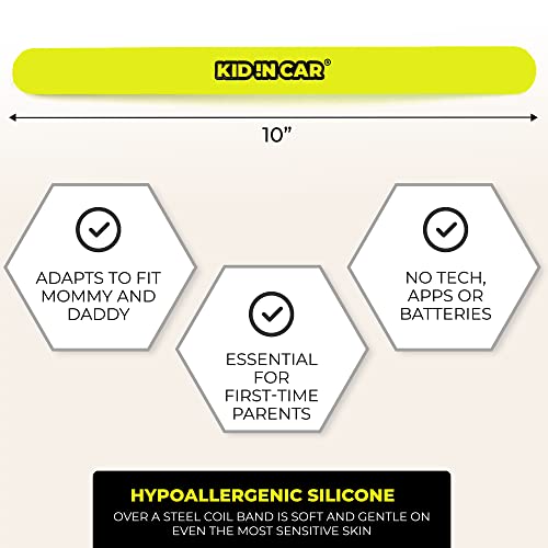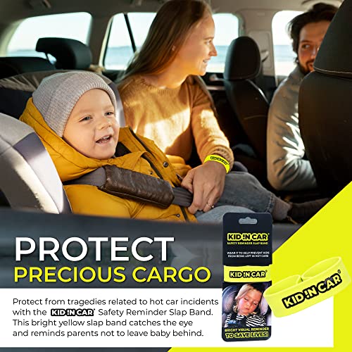 PROTECT YOUR PRECIOUS CARGO from tragedies related to hot car incidents with the KID !N CAR Baby Car Reminder. This neon yellow slap band catches the eye and reminds parents not to leave baby behind.