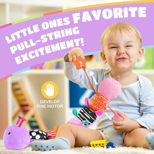 【Scientifically Designed Tummy Time Toy】Featuring vibrant patterns,mirrors,and pull strings,this stuffed animals pique baby’s curiosity,keeping their attention for extended periods.Aiding in head lifting,preventing flat head syndrome, promoting muscle development,preparing for crawling,enhancing coordination,hand-eye coordination and grip strength.Ideal for baby toys 0-6 months,subtly improving skills during play