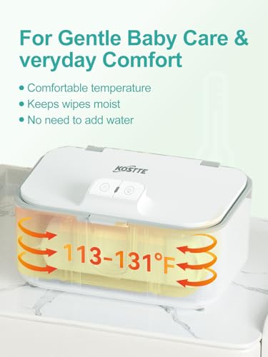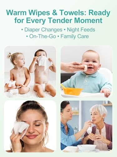 Consistent 113-131°F Warmth – Pre-set safe temperature warms wipes evenly from all sides, clinically tested to prevent overheating. Ideal for baby’s delicate skin, skincare, or kitchen cleanups.