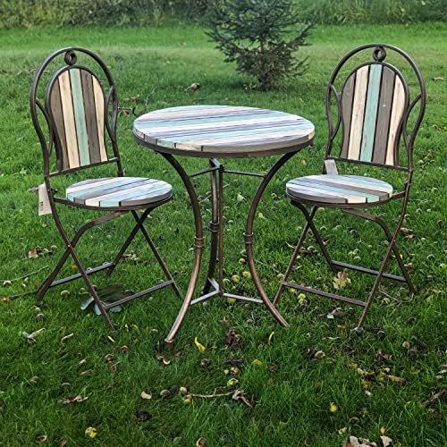 Transform your porch, patio, or balcony into a charming retreat with the Backyard Expressions Rustic Farmhouse 3-Piece Bistro Set. Designed with comfort, style, and practicality in mind, this set features a round bistro table and two folding chairs, perfect for enjoying coffee, meals, or conversations in any outdoor setting. The tabletop and chair seats are crafted with distressed wood slats in soft farmhouse colors—cream, mint, tan, and espresso—that blend beautifully with a variety of outdoor décors. The elegantly curved wrought iron frames add both durability and style, ensuring that this set looks inviting season after season. Compact in size yet spacious enough for two, the Bistro Set is ideal for smaller spaces such as porches, apartment balconies, and garden nooks. The foldable chairs make storage simple, while the lightweight frame allows you to rearrange your setup with ease. Best of all, setup takes only minutes—unfold, place, and enjoy. Whether you’re sipping your morning coffee, sharing lunch with a neighbor, or relaxing at sunset, the Backyard Expressions Rustic Farmhouse Bistro Set creates a welcoming space to enjoy the outdoors.