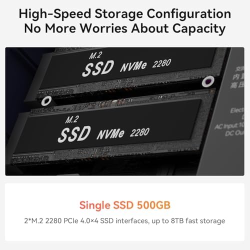🔥【Capacity can be free expanded】What sets this small PC apart from other micro PCs is that it has empty expansion bays that can be added. Beelink Mini PC equipped with 24GB (12GBx2) of LPDDR5 high-capacity RAM. The frequency ensures smoother system operation, faster software startup, and speedier dataprocessing. In addition, mini pc is equipped with 500GB M.2 NVMe PCIe 4.0×4 SSD (Dual SSD Max Storage 8TB).