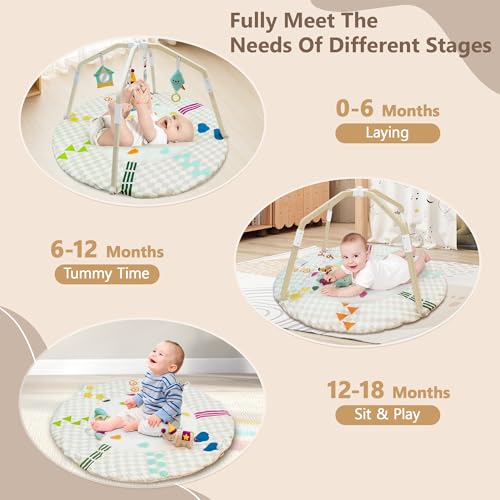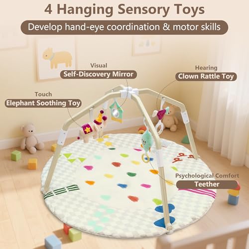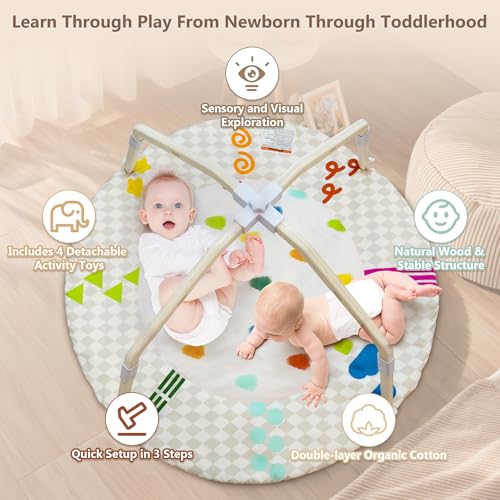 All-Around Early Development: Equipped with 4 detachable baby toys that can be grasped, shaken, or pressed to make sounds, this baby activity gym grows with your baby from newborn to toddler. It supports stage-based development from early sensory focus (0-6M) to active exploration (6M+), promoting visual, tactile, and auditory development along with hand-eye coordination