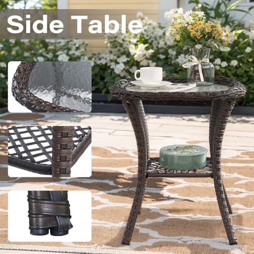 Belord outdoor furniture set comes with two premium swivel rocker outdoor chairs with 360-degree swivels and gentle rocking motion for relaxation. The smooth swivel allows you to turn in any direction with ease and is ideal for socializing or enjoying the views from your patio. The ergonomic design ensures maximum comfort, with supportive cushions that mold to your body for the perfect balance of softness and stability.