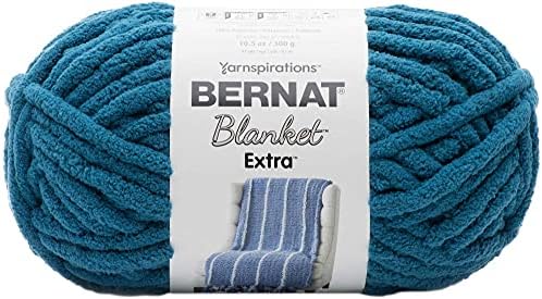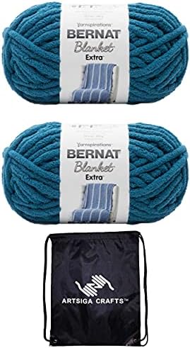 Includes Bernat Blanket Extra Yarn Velveteal 2-Skein Factory Pack (Same Dyelot) 1610272-7008 with 1 Craft Project Bag. The chenille-style yarn you love is now thicker and quicker! Create blankets, baskets, pillows and more with the fast-stitching Bernat Blanket Extra! 7. Content: 100% Polyester. Putup: 10.5oz/300g, 97yd,87m. Gauge: 5sx7r = 4in/10cm on size US17/12.75mm knitting needles. Suggested crochet hook size: Q/15mm. Dyelotted: we try but are not always able to match dyelots. Care: machine wash and dry, do not bleach. Comes in a variety of colors. Imported.