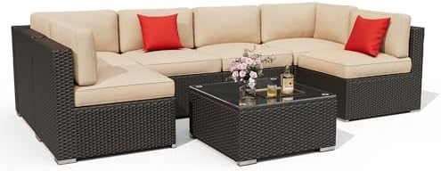 【Comfortable & Combinable】This wicker patio furniture sets are able to fit a variety of living space styles and settings, can easily accommodate 4-6 friends, coffee table top for snacks and drinks. Can combine it into the style you want according to your needs, you can easily spend good leisure time with your friends.