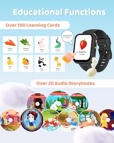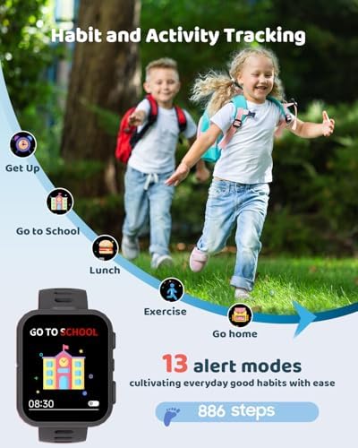 【Multi-functional Kids Watch】Dual camera, 30 games, video recorder, and audiobooks make this smart watch for kids an all-in-one device. With learning cards, habit tracking, and kids watch-exclusive features like a pedometer and flashlight, it requires no smartphone connection—perfect for independent use.