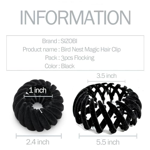 【Size & Material】The package contains 3 pcs velvet birds nest magic hair clip. The inner diameter of the hair barrettes when closed is 1.0″, and when expanded it’s 3.5″. The adjustable size allows for a looser fit, providing better scalp relaxation