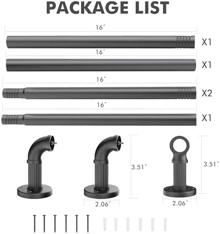 Manufacturer Wayolte ASIN B093CXC7GY Item Weight 7.12 pounds Package Dimensions 51.63 x 5.5 x 3.13 inches Is Discontinued By Manufacture No Size 72-144″ Finish Matte Black Material Steel Item Package Quantity 2 Included Components Mounting brackets included Batteries Included? No Batteries Required? No
