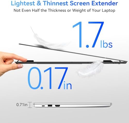 🏆𝗪𝗶𝗱𝗲 𝗰𝗼𝗺𝗽𝗮𝘁𝗶𝗯𝗶𝗹𝗶𝘁𝘆, 𝗨𝘀𝗮𝗯𝗹𝗲 𝗔𝗰𝗿𝗼𝘀𝘀 𝗠𝘂𝗹𝘁𝗶𝗽𝗹𝗲 𝗦𝘆𝘀𝘁𝗲𝗺𝘀 & 𝗗𝗲𝘃𝗶𝗰𝗲𝘀: This laptop extended monitor portable works seamlessly with Windows, Mac, ChromeOS, Android & Linux systems. This monitor extension for laptop supports supports connection to laptops, smartphones, Switch, M1, M2, M3 and other devices equipped with a full-function USB-C port. The laptop extender features reinforced springs, non-slip pads, and a rear stand to securely hold laptops ranging from 14 to 17 inches.