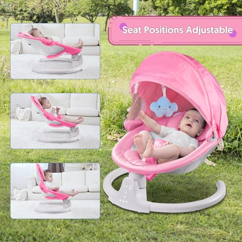 5 Swinging Speeds: Our mecedora eléctrica para bebe emulates parents’ natural side-to-side motion at 5 different speeds, with a portable design, baby can always happily swing away by the busy parent’s side.