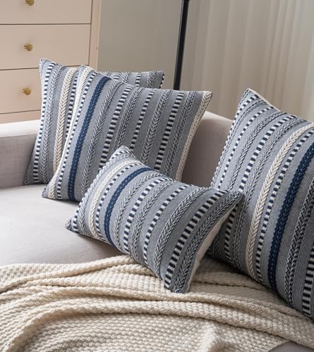 Design Details & Features: Finished with reinforced stitching to prevent fraying and ensure long-lasting durability; Features a discreet invisible zipper for a seamless look and easy care; Each pillow cover showcases two bold woven stripes, offering a versatile accent that complements any sofa or decor style