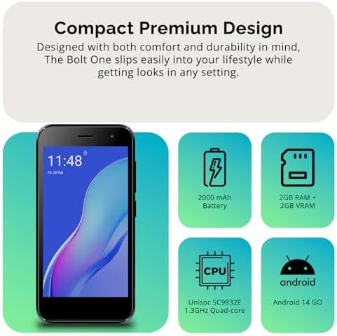 Customizable Storage: with 32GB of internal storage and an additional 512GB of expandable storage with a microSD card, the Bolt 1 offers the flexibility to expand your device’s capacity, providing additional space for photos, videos, and files.