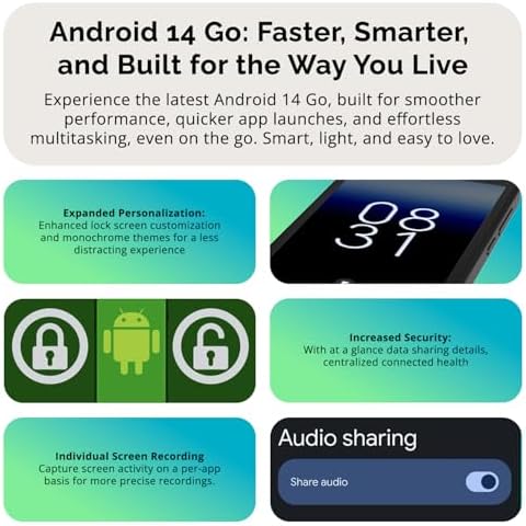 Software: Android 14 Go runs flawlessly in partnership with the 2GB of RAM and 1.3 GHz Quad core processor.
