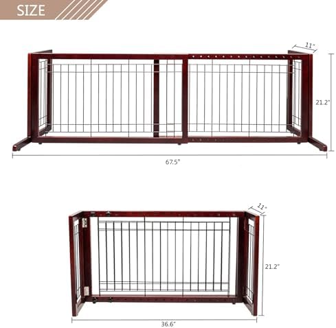 Adjustable Width: It is high enough to prevent small pets from entering, but low enough for adults to easily step over (height 21 inches); the length can be extended from 36.6 inches to 67.5 inches (simply move the screws to other pre-drilled holes to easily adjust the size).