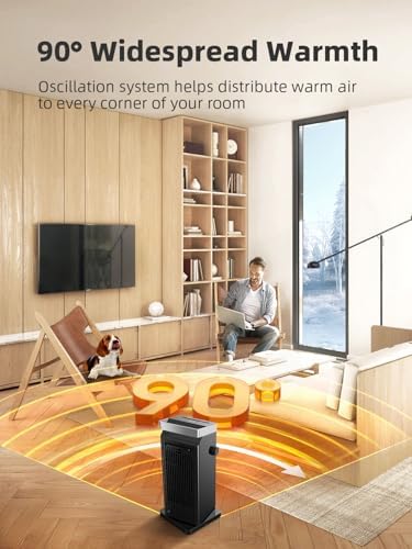 VERSATILE APPLICATION: Our room heater is featured with 90°oscillation system that can sweeps around the heat to every corner of your room. Equipped with a portable handle, you can take it to any indoor space like bedrooms, living rooms, basements, garages, offices, etc. Say goodbye to the freezing winter