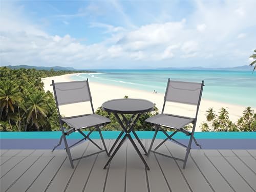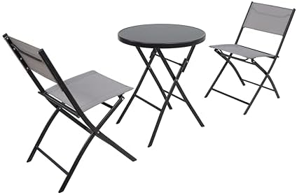 𝐌𝐔𝐋𝐓𝐈-𝐏𝐔𝐑𝐏𝐎𝐒𝐄: BTExpert 3Piece Compact Folding Bistro Table Set comes with Metal Tempered Glass table & two folding chairs perfectly made for indoor & outdoor use, events, home, garden, patio, dining, lunch or other activities. Party Chairs made of Heavy-duty metal frame with special Powder coating is rust resistant & weather resistant. Breathable Textiline fabric used in Folding chairs provide cool environment and is quick to dry. Folding Chair made of tempered glass & sturdy metal frame.