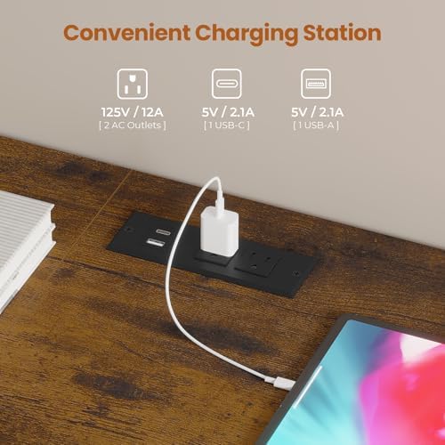【Convenient Power Outlets】Equipped with 2 standard power outlets, 1 USB-A port and 1 Type-C port, this TV stand provides multiple charging options to ensure all your devices (TV boxes, media players, game consoles, speakers, etc.) are always ready to go while keeping the wires tidy.