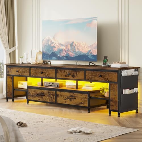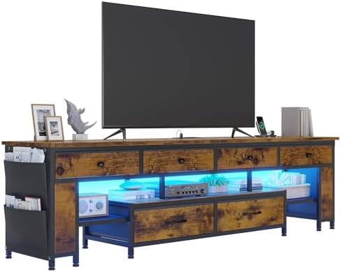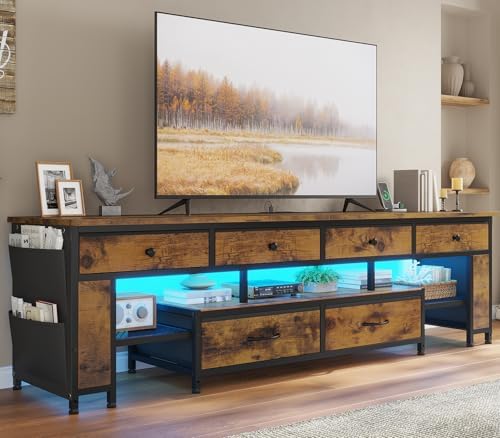 【Various Storage Spaces for Classified Storage】With 6 fabric drawers, 4 fabric pockets, open shelf and 2 height-adjustable metal mesh shelves, this TV stand offers a variety of forms of storage space suitable for storing different sizes and types of items to meet diversified storage needs, easy to access and avoid confusion.