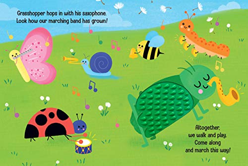Butterfly loves playing the flute. Who wants to join her marching band? Find out in this rhyming, silicone touch and feel book that is sure to please your little music fan. The touch and feel silicone textures add a sensory element to this book for toddlers.
