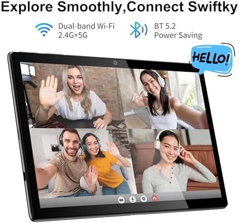 【Latest WiFi 6 and Bluetooth 5.2】This 2025 WiFi tablet features the latest WiFi 6 (2.4G/5G) module for seamless connectivity, effortless web browsing, and Bluetooth 5.2 pairing. With a built-in 3.5 mm headphone jack and dual stereo speakers, it delivers an exceptional audio-visual experience.