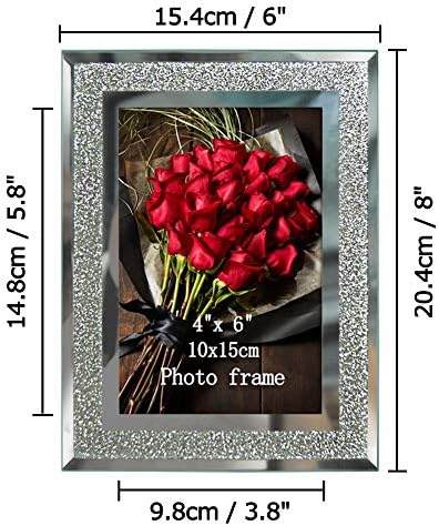 ATTRACTIVE SPARKLE DESIGN. Stylish glass picture frames accented with beveled cut and glitter decoration, it will draw eyes to the photo and makes an effective display.