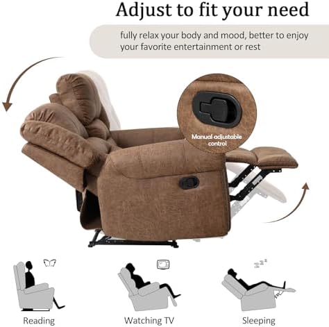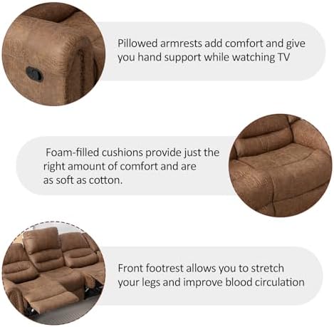 COMFORT OVERSTUFFED BACKREST & ARMREST:The comfort soft padded armrests add an extra layer of relaxation, allowing you to rest your arms comfortably while you reading、watching movie or nipping. The cushion of this recliner sets for living room are made of high-density soft sponge and has a built-in spring,it can relax your body and mind and relieve fatigue.