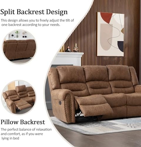 HIGH QUALITY FAUX LEATHER RECLILING SOFA SETS:This sofa is wrapped in high quality breathable faux leather fabric, hardwood frame and high elastic sponge filling, the recliner sofa will give you a comfortable and soft sitting experience, the leather texture is smooth and supple, which not only enhances the aesthetics but also is easy to care for, which is perfect for daily use.