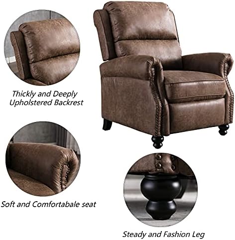 Distinctive Rivet Design: Simple and generous backrest design, round armrests inlaid with rivet decoration, make your home more classic and stylish. You can put this push back recliner in the living room, study, bedroom, office, and enjoy a comfortable life.
