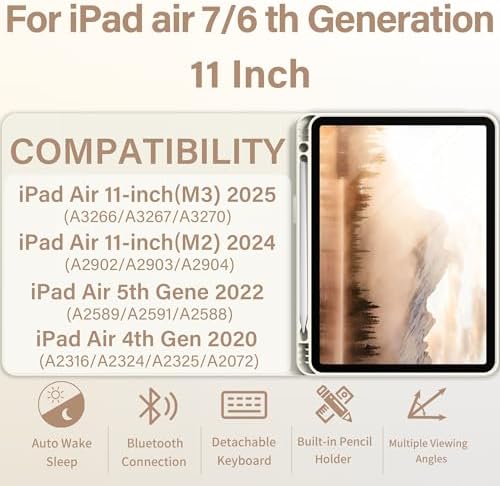 【New iPad Air 2025/2024 M3/M2 Case with Keyboard 11 inch】This keyboard case only compatible with iPad Air 7th/6th/5th/4th Generation 2025/2024/2022/2020, Model Number:(A3266, A3267, A3270, A2072, A2316, A2324, A2325, A2588, A2589, A2591, A2902, A2903, A2904).It is not compatible with any other models, please check the model number on the back of your iPad before purchasing a case