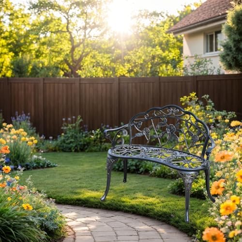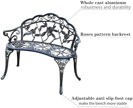 【High Quality】: Our entire outdoor bench is made of high-quality cast aluminum, which is not only sturdy, but also not easy to rust. Without the use of iron feet, the weight will be lighter. You can use it indoors or outdoors without worrying about corrosion or damage.