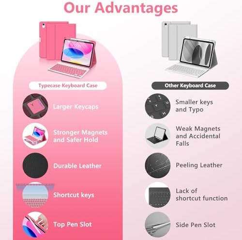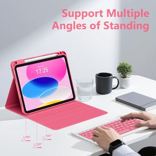 This for ipad 10th generation case with keyboard is magnetic and it can be strongly attached to the case or detach completely. When you do not need the keyboard can be stored away, easy to carry it on the go. It is easy, fast and stable to connect via BT, reconnect immediately turning it on. Perfect for typing, editing, or streaming—all while maintaining laptop-grade convenience in a featherlight design.