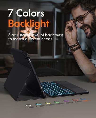 【Backlit Keyboard For iPad 9th Generation】- The keyboard case provides 7 color backlit options and 3 brightness modes, It has 3 brightness modes and breathing rate adjustments for more comfort. The spacious layout of the backlit keyboard is convenient for typing, and it is full of science and technology. You can read, browse and work freely anytime, anywhere.