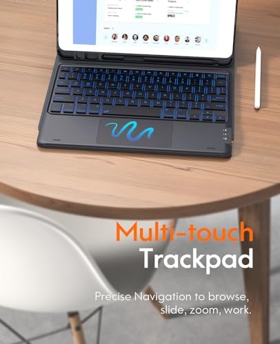【Multi-Touch Trackpad】- This keyboard case for iPad 10.2 has an integrated multi-touch trackpad that perfectly adapts to the IOS system, with various trackpad gestures, providing a comfortable usage experience while clicking, scrolling, and swiping through content effortlessly. Allows you to turn your 10.2/10.5 inch tablet into a real laptop and is very convenient for your typing, watching, working, and carrying without a mouse needed.