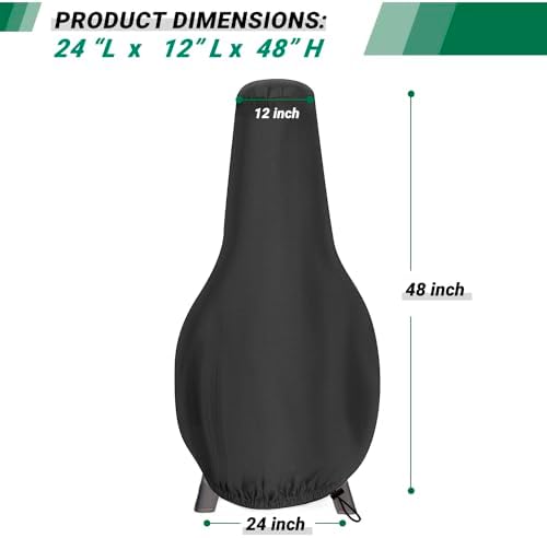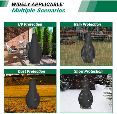 Perfect Size: Chiminea cover is 48 inches tall, 12 inches in diameter at the top and 24 inches at the bottom, fits for most chiminea hoods, please measure your fireplace size carefully before purchasing