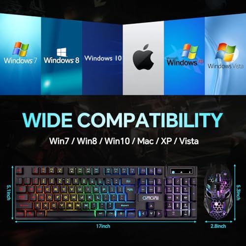 【Wide Compatibility】The PC gaming keyboard and mouse combo is suitable for PC, laptop, PS3, PS4, PS5, Xbox, Mac. Plug and play, no additional drivers required. Compatible with Windows 2000/2003/XP/Vista/Win7/Win8/Win10/Win11