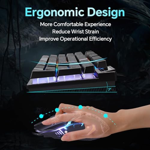 【Ergonomic Design Gaming Keyboard and Mouse】The gaming keyboard is ergonomically designed with a scientific layout of high and low keycaps to fit your hands naturally, bringing maximum comfort and effectively reducing hand fatigue after prolonged use. The light up keyboard has non-slip pads on the bottom to enhance the stability of the keyboard and prevent it from moving back and forth. A great choice for your modern office use or playing games.