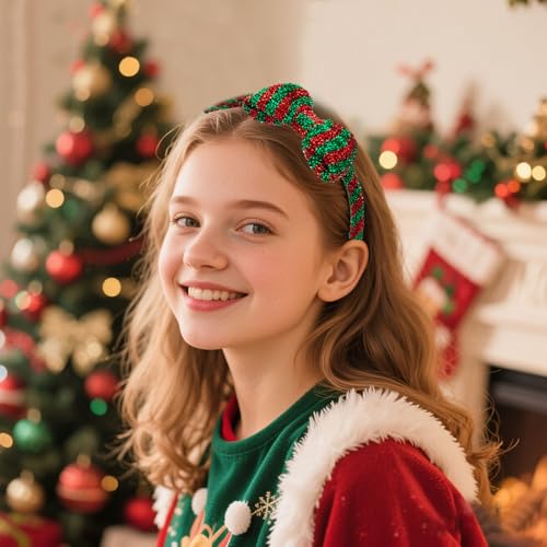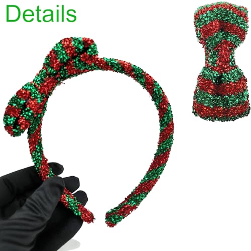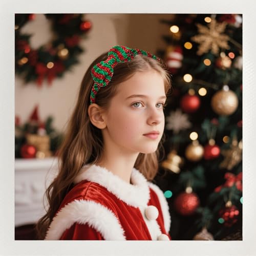 Festive Glitter Sparkle & Premium Material – This stunning Christmas headband features a large, elegant bow adorned with vibrant red and green glitter that catches the light beautifully. Made from high-quality, non-shedding materials, it’s the perfect Christmas hair accessory for a comfortable and dazzling look throughout your holiday festivities.