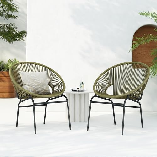 【Outdoor Basket Chairs Set of 2】With clean lines contrasted perfectly by its round silhouette, our basket chair is the ideal modern accessory for your outdoor space. Finished with thin metal legs, this chair not only offers a sleek, minimalistic look but also provides a stable structure