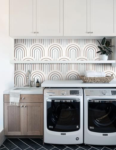[Unique Design] This wallpaper pattern is composed of smooth arched elements, with simple lines and a sense of rhythm. In color selection, neutral color is the main tone, with different shades, creating a harmonious, calm and layered visual effect, which can adapt to a variety of interior decoration styles and add exquisite and artistic atmosphere to the space. Choose this wallpaper of CiCiwind to meet your decorative needs of retro elements and modern minimalist style.