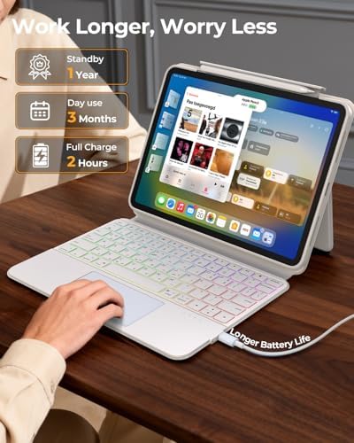 Multi-Touch Trackpad, Gesture Support & 7-Color Backlit Pro Design – All Scenarios Ready: Navigate like a pro via a high-precision trackpad with native iPadOS gestures. Swipe, scroll, and switch apps intuitively to boost workflow. The classic black keyboard, blending business style and customization, has 7 adjustable backlight colors for dim settings or workspace flair.