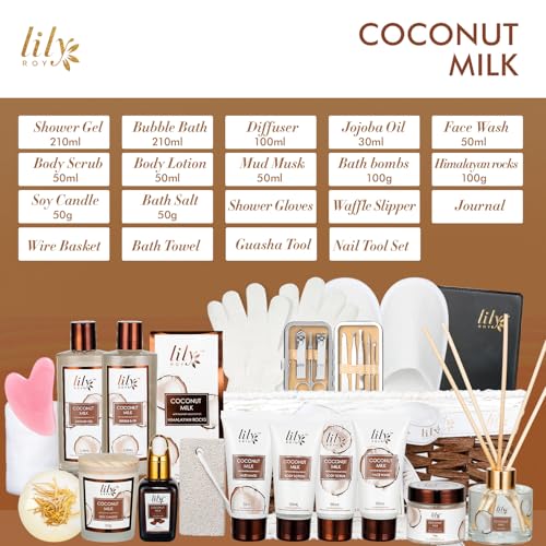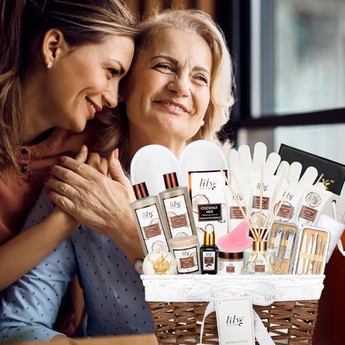 💝【28pcs Thoughtful All-in-One Gift Set】The perfect gift package includes shower gel, bubble bath, diffuser, reed sticks, himalayan rocks, jojoba oil, face wash, body scrub, body lotion, mud musk, bath salt, soy candle, bath bomb, shower gloves, pumice, bath towel, guasha tool, 8pcs nail tool, journal, Waffle Slipper packaged in a nice natural beautiful basket. Beautifully basket gift set for birthdays, Mother’s Day, Christmas, or thank you gifts